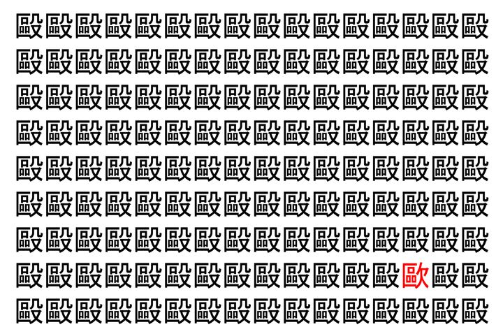 【脳トレ】「毆」の中に紛れて1つ違う文字がある!?あなたは何秒で探し出せるかな??【違う文字を探せ!】