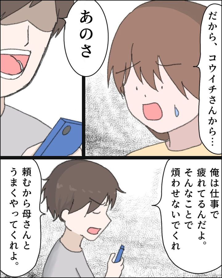 「母さんが子育てやってくれてるんだろ?いいことじゃないか。気にしすぎだよ」サラリと流すコウイチさんに、