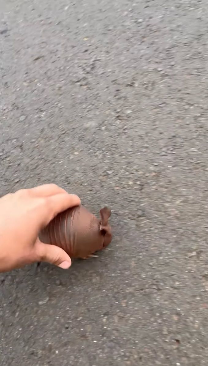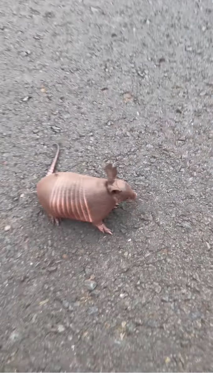 車から飛び出した撮影者さんがそばまで寄ってみると、この子たちの正体というのは・・・なんとアルマジロだったのです!