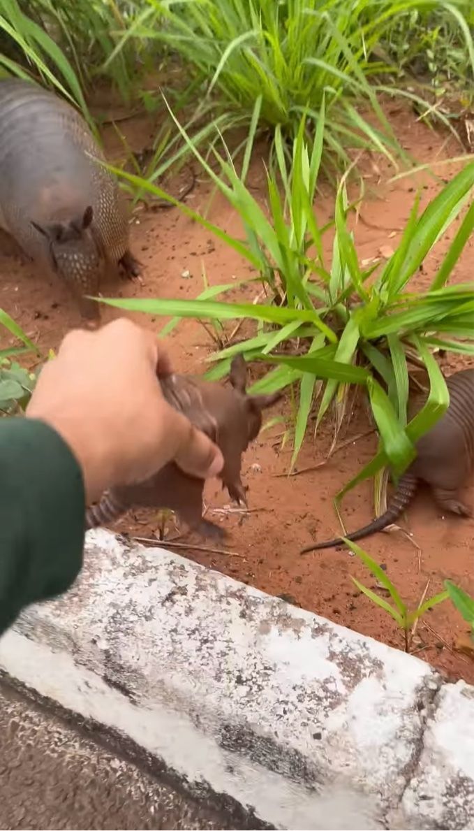 このアルマジロの危機に、撮影者さんはすぐさま救助活動を行うことを決定。 小さなあかちゃんをアルマジロをひょいっと抱え上げると・・・