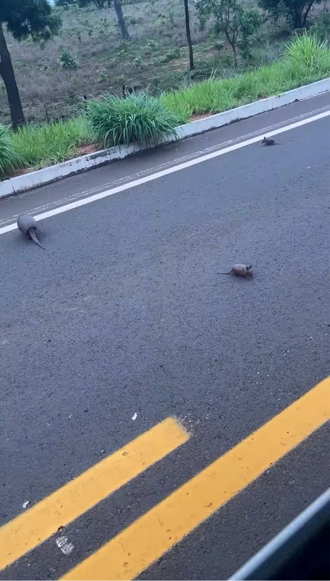 車に乗っていた撮影者さんは、道路にモゾモゾ動く複数の影を発見。 なんと、道路にアルマジロの家族がいたのです!