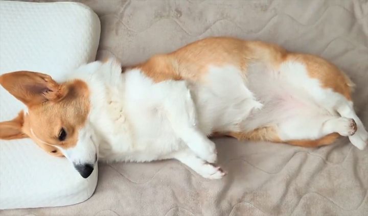寝起きのコーギーがかわいすぎると反響!「 みょ〜んてなるとこが面白い」「後脚を重ねてるのがたまりません」