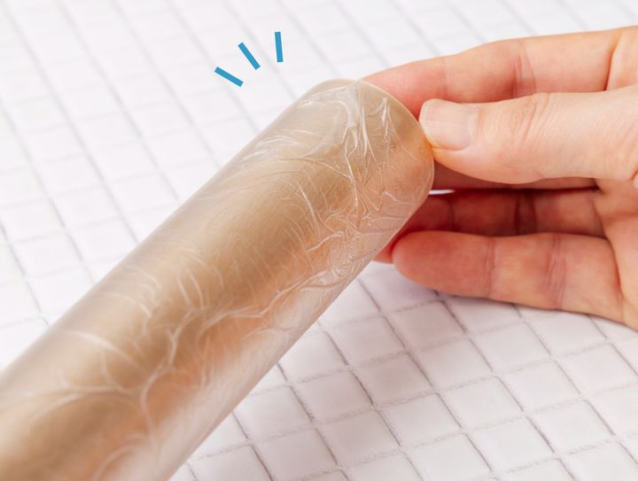 一周こすってもはがれなかったら、ラップの巻きの向きが逆の可能性も。反対にして再トライしてみて!