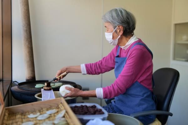 昔は薪を燃やして鉄板を熱していたらしく、焼きムラが出ないように調節するのが難しく、職人技が必要だったそうです。 現在はガスを使用しているので、昔よりも安定した焼き色が付けられるようになったそう。