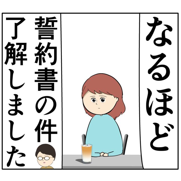 めいさんからの要求に「なるほど。誓約書の件、了解しました」とすぐに承諾したジュリ実さんの夫。