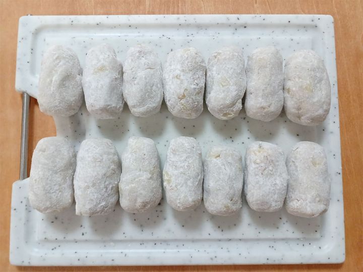 サッと片栗粉に落としてから成形するとやりやすいです。