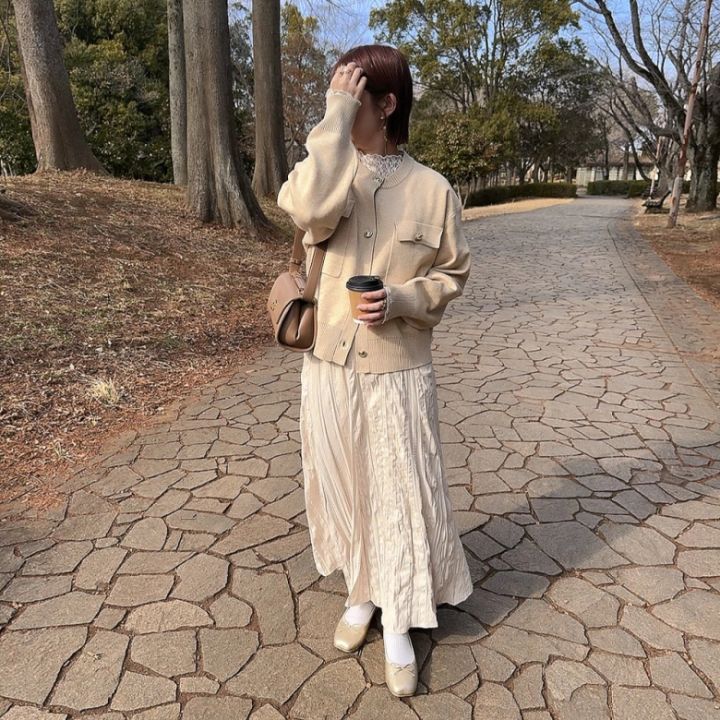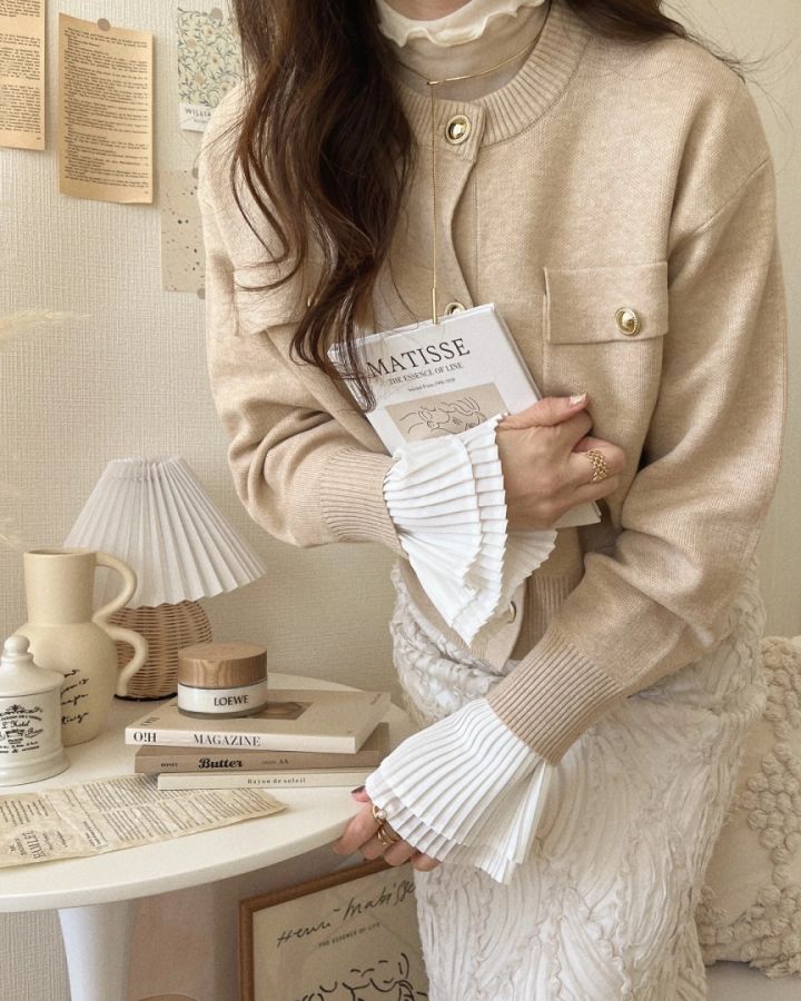 【カーディガン×リブTシャツ】上品に揺れる袖プリーツから目が離せない♡