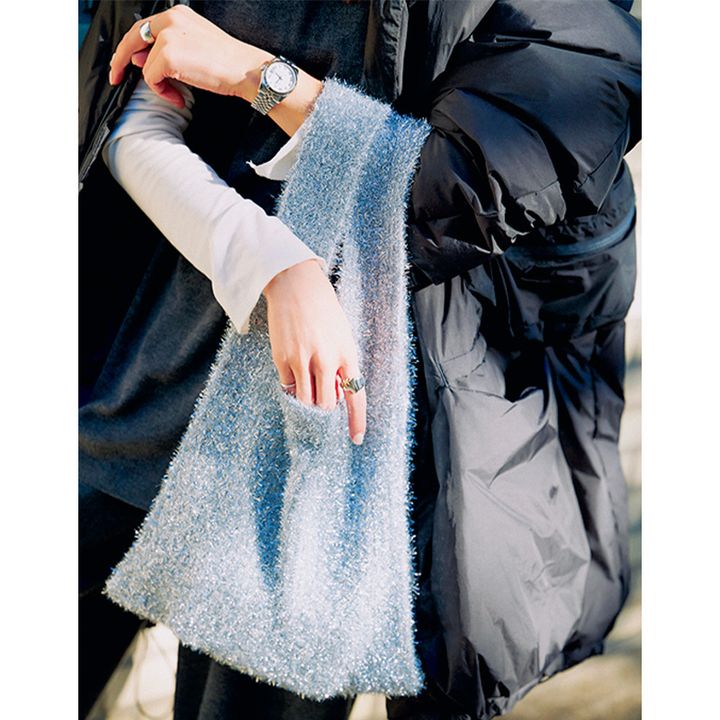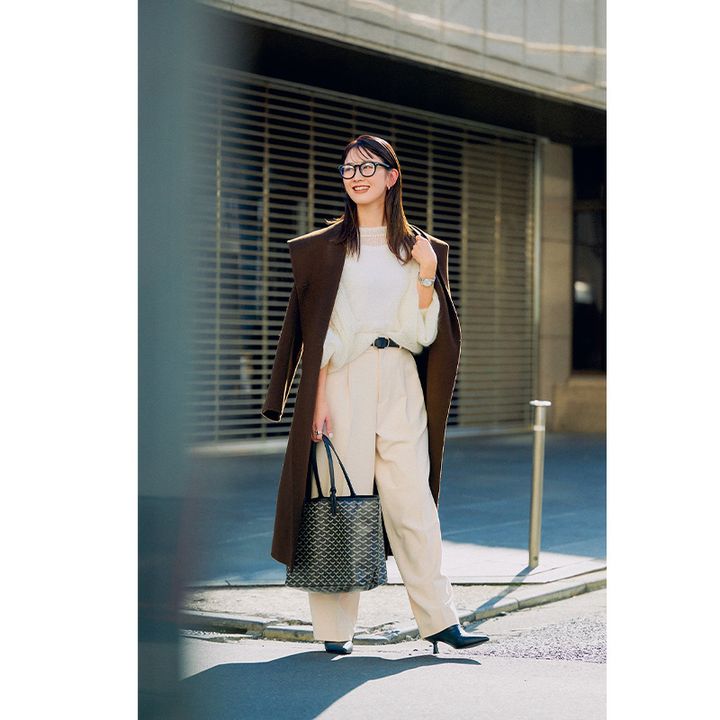 隣駅の幼稚園に通う長男は、毎日園バスで登園。次男の保育園⇄バス停と自転車ではしご送迎の慌ただしい日々を過ごしています。週初めの月曜日は、スウェット並みに楽ちんだけど着るだけでサマになるeldoのニットセットアップが頼りに。一日中在宅だから薄メイク&ノーヘアセットも帳消しにしてくれるニット帽も欠かせません。バス停では、違う学年の素敵なママさんと会話することが多いから、ストレスフリーでありつつも生活感を感じさせないスタイルがマイルール。ラメ入りエコバッグやゼブラ柄のスニーカーなどで、目指すは脱・部屋着感!