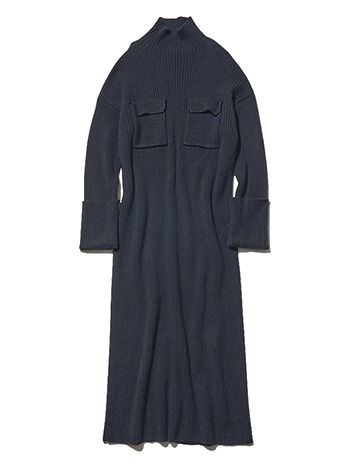 黒胸ポケットつきリブタートルニットワンピース/SACRA(インターリブ) 首まわりをキレイに見せる、フィット感のいいボトルネック。長めのそでを折り返したようなデザイン。後ろのすその小さなスリットが抜け感に一役。