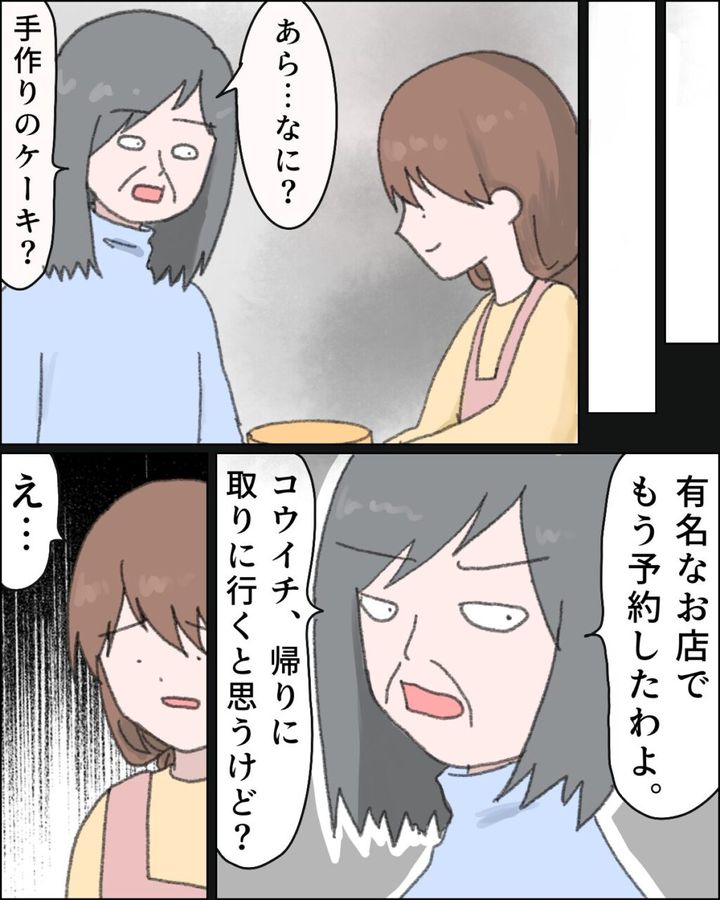 すると、部屋から義母が出て来て、「あら・・なに?手作りのケーキ?」と言った後で、