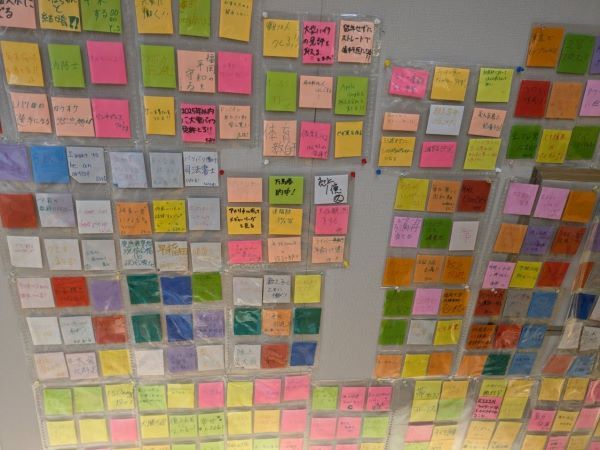 極太麺はゆで時間が長いので、待っている間に自分の「夢」を付箋紙にしたためるのもお勧め♪天井には多くの方々の想いが溢れています。