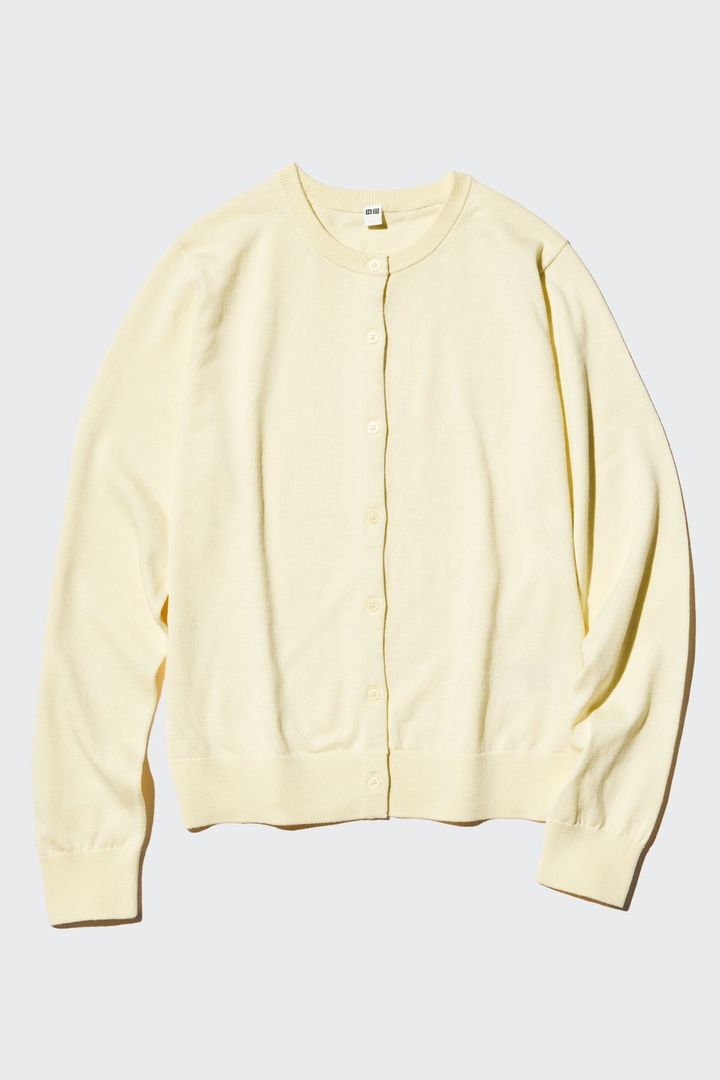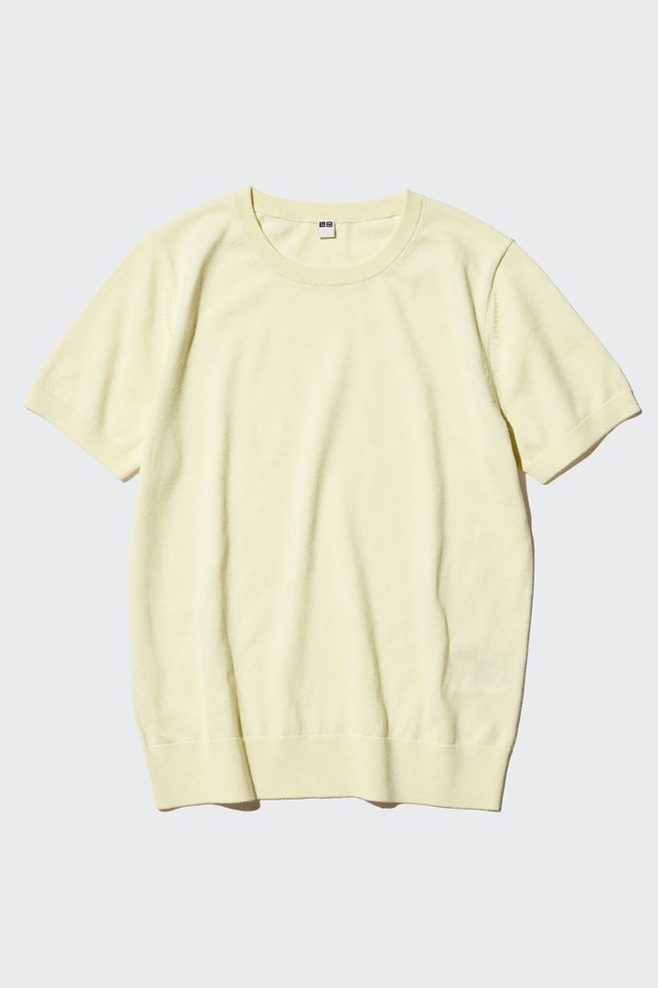 【セレモニー】タックワイドパンツ[00 WHITE]¥3,990ニットショートジャケット[01 OFF WHITE:2月中旬販売予定]¥3,990UVカットクルーネックセーター半袖[42 YELLOW:2月下旬販売予定]¥1,990【着回しぶん】UVカットクルーネックカーディガン[42 YELLOW:2月下旬販売予定]¥2,990(すべてユニクロ)