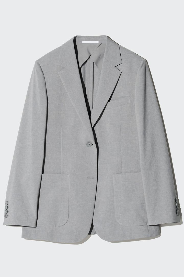 抜群の伸縮性と軽さ、速乾性にも優れたジャケットやパンツを展開するユニクロの「感動」シリーズに、待望のオーバーサイズジャケットとワイドパンツが仲間入りしました。ジャケットは身幅にたっぷりとゆとりを持たせたボックスシルエット。ワイドパンツは、すとんと落ちるシルエットやセンターラインのおかげできちんと感をキープしてくれます。より今っぽく着こなすなら、グレーのジャケパン×ブルーシャツで決まり。洗練された装いに仕上がり、高見え効果も抜群です。