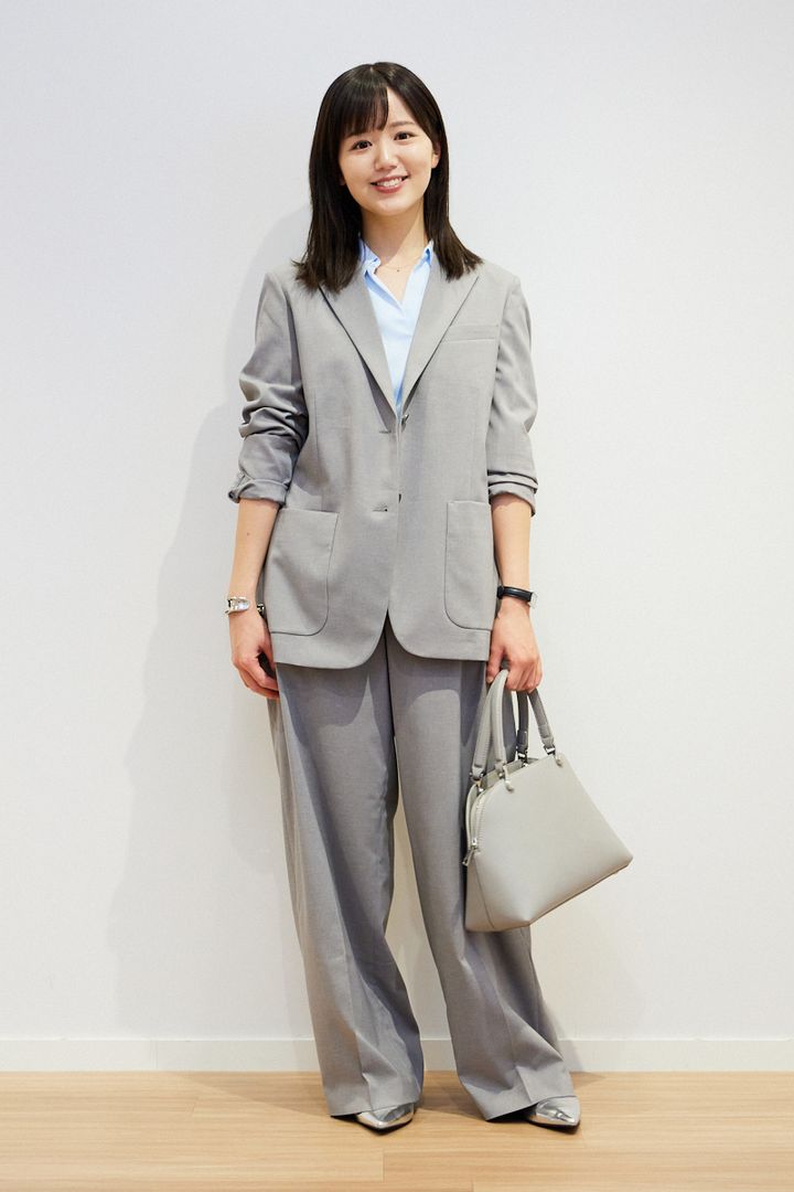 感動ジャケットリラックスフィット[03 GRAY]¥6,990レーヨンスキッパーブラウス/7分袖¥2,990[60 LIGHT BLUE]感動ワイドパンツ[03 GRAY]¥3,990(すべてユニクロ)