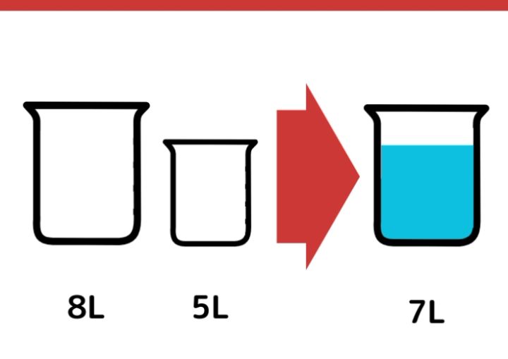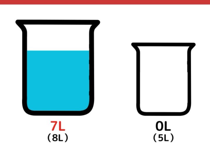 水がちょうど7L入る容器が手元にありません。8Lと5Lの容器を使って、ちょうど7Lの水を計る方法を考えてください。