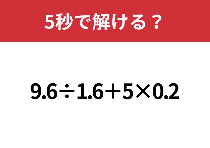 正解できる人はかなり少ないかも!?「9.6÷1.6+5×0.2」5秒で解ける?