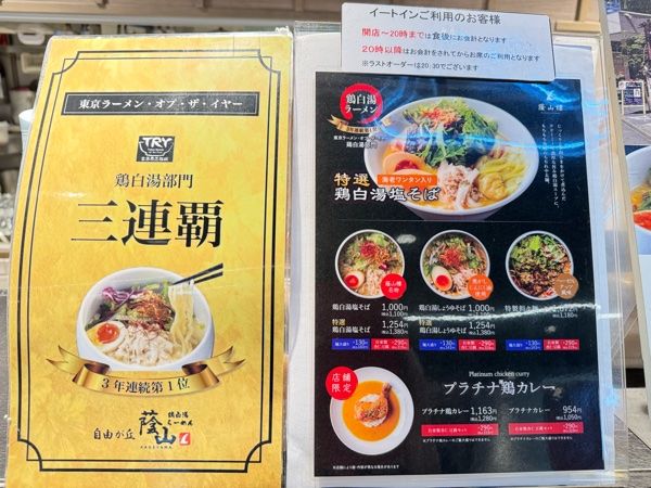 イートインメニューは鶏白湯そばとプラチナ鶏カレー