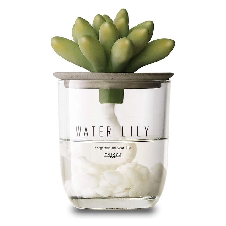 まるで植物のような見た目が愛らしいリードディフューザー。サボテンの形をした部分は、フレグランスオイルを吸って少しずつ濃い緑色に変化していくので、植物を育てるような感覚で毎日の変化を楽しむことができる。香りはフルーティーなクリアエアー、気品溢れるウォーターリリー、フレッシュなサンフラワーの3つから選ぶことができる。