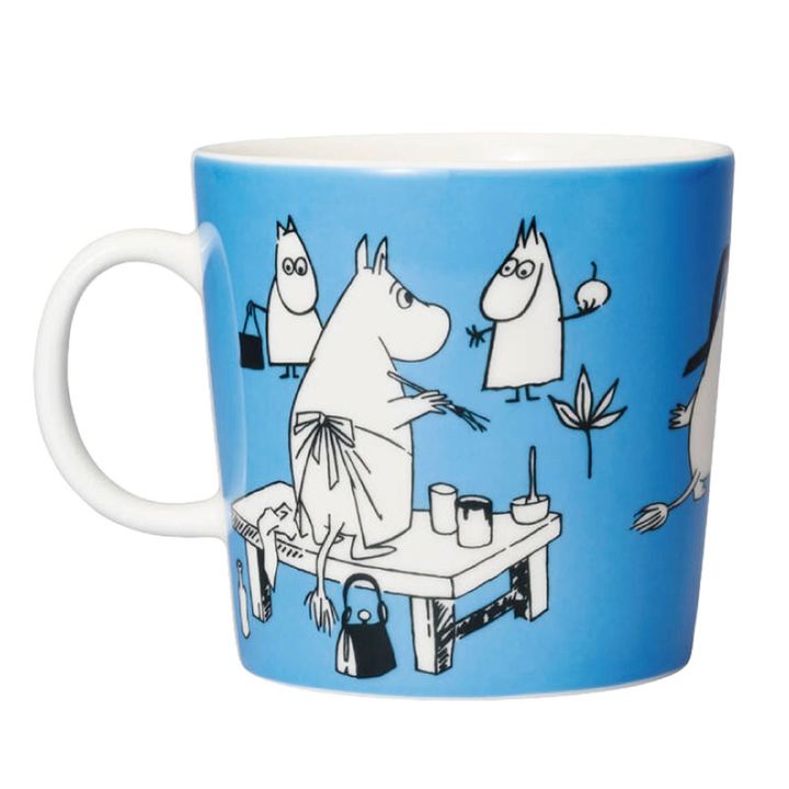 アートに勤しむムーミンファミリーを描いたかわいいマグカップは、陶芸家でイラストレーターのトーベ・スロッテがデザインしたもの。フィンランドの陶磁器ブランドであるアラビアが手掛けており、電子レンジや食器洗浄機にも対応する。デザイン性と実用性を兼ね備えた、ギフトにもふさわしいマグだ。