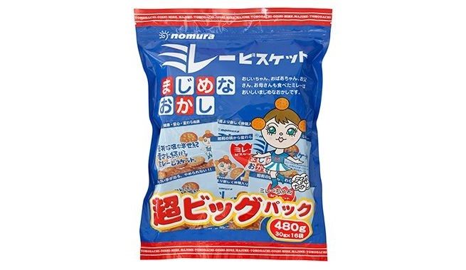 昭和30年ごろから製造が開始され、今もなお多くの人から愛されている「ミレービスケット」。ドンキでは、大袋に入った「ミレー超ビッグパック」が販売されています。中には小分けにされたミニパックが16袋も入っており、個包装されているので、家族や友達とのシェアもおすすめ。