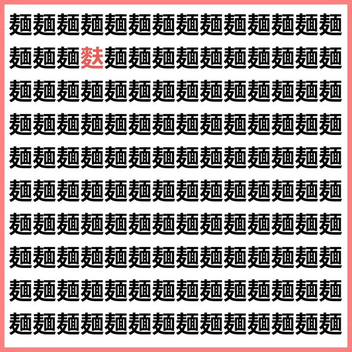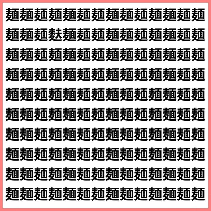 たくさんの「麺」の中に、1文字だけ違う漢字が混ざっています。