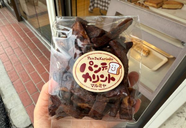 名物「パンデカリント」は食パンから作られたお菓子で、サクサクと軽やかな食感と、黒糖のやさしい甘さが特徴です。ひと口食べると、つい「もう一つ、もう一つ」と手が伸びてしまう魅力があります。