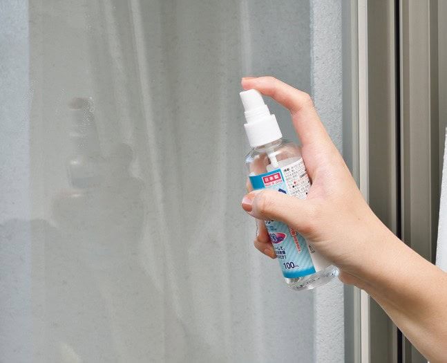で拭いた場所にアルコールスプレーを吹きかける。
