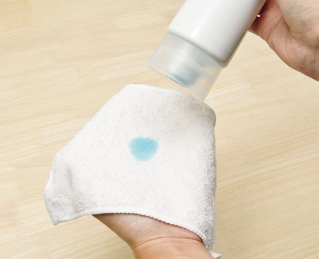 を汚れた部分に雑巾で塗布する。数時間おいてから、濡れ雑巾で漂白剤をよく拭き取る。