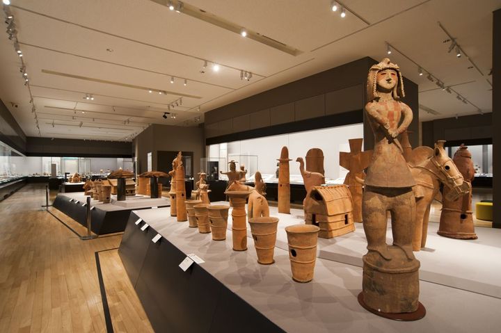 古墳時代のコーナーには、「はにわ」がたくさん! それぞれ表情豊かで、ポーズや装飾物もさまざま。約1500年も前に作られたものですが、今の視点で見てもおもしろいです。