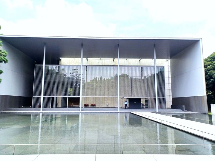 法隆寺献納宝物を展示している建物です。1999年に建て替えられた谷口吉生氏設計のモダンな建築は、2001年度の建築学会賞(作家部門)を受賞したとか。人工池と緑に囲まれ、自然光が入る空間に癒やされます。