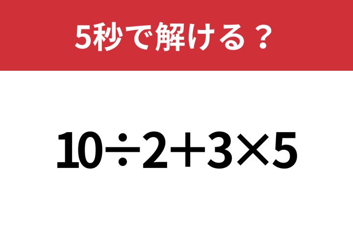 大人なら解けないと恥ずかしいかも!?「10÷2+3×5」5秒で解ける?