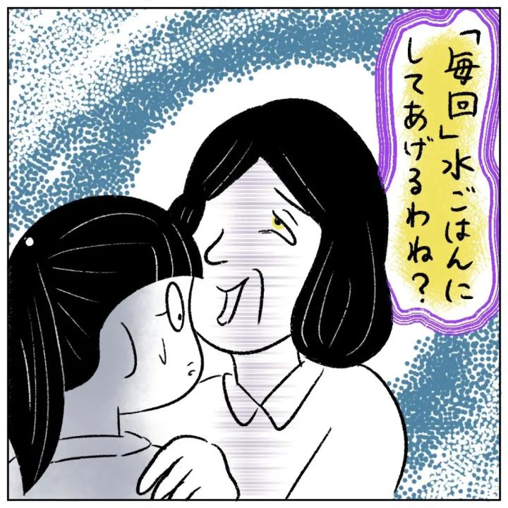 「『毎回』水ごはんにしてあげるわね?」とニヤニヤしながら言いました。
