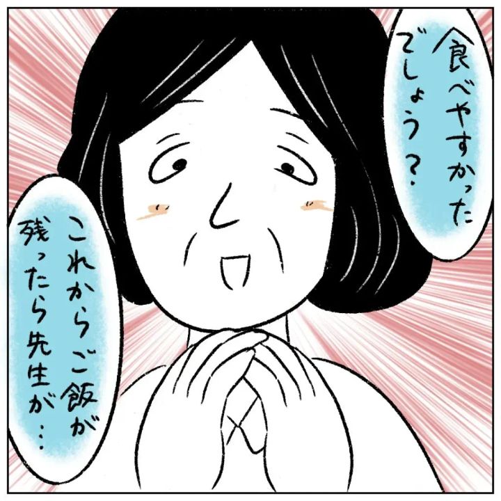 そして、嬉しそうに話し始めます。「食べやすかったでしょう?これからご飯が残ったら先生が・・・」