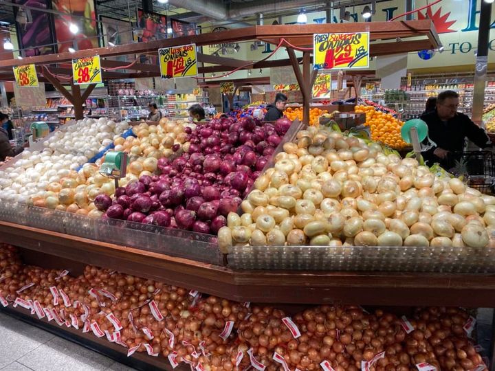 陳列がダイナミックなアメリカのスーパー。そして、売られているこれらはすべて、たまねぎ。食材も商品も種類が多すぎて、いつも買い物に時間がかかります(それもひっくるめて楽しいんですけどね)。