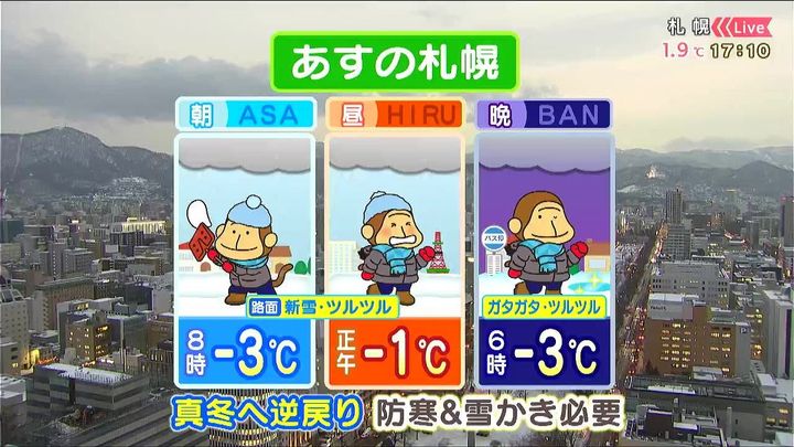 18日の札幌です!朝昼晩の天気をもんすけでお伝えします!