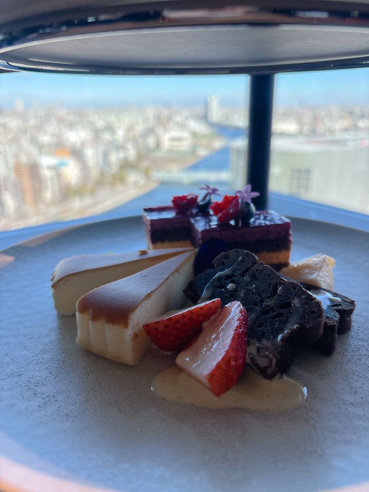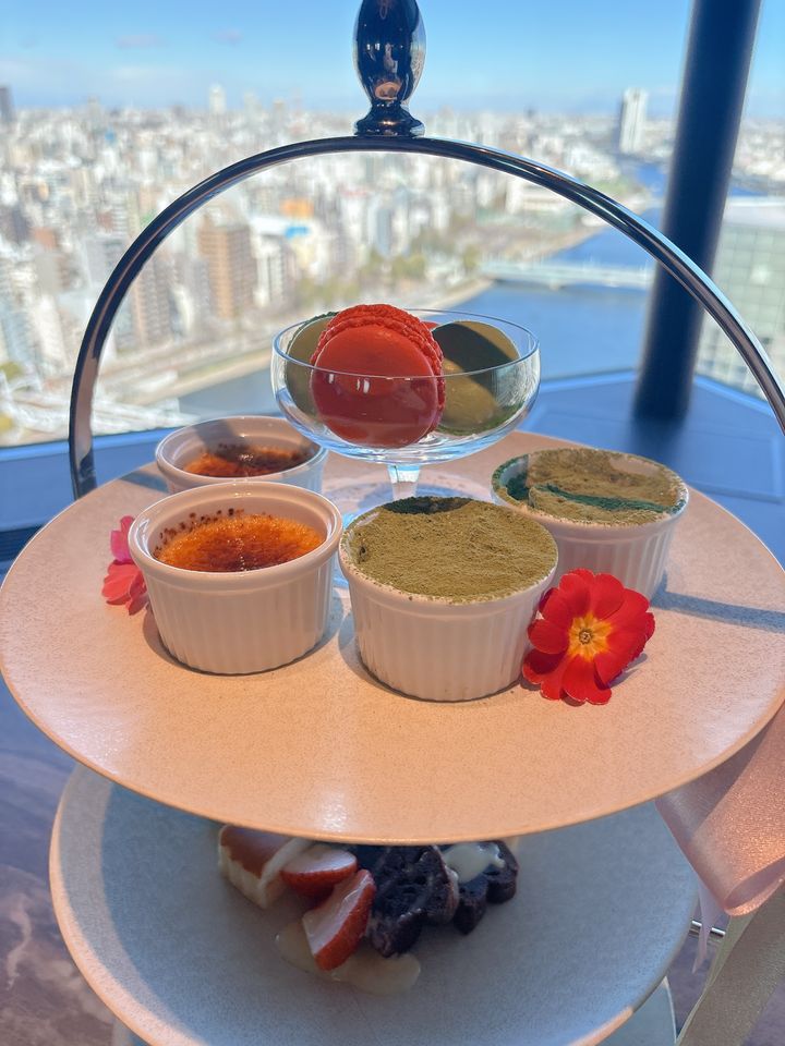 今回ご紹介するのは、浅草のアサヒグループ本社ビル22階にあるレストラン『ラ・ラナリータ 吾妻橋店』のアフタヌーンティーセット。