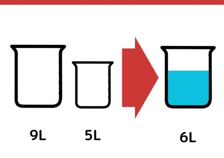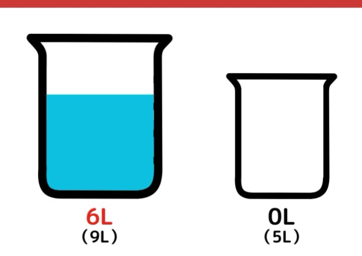 水がちょうど6L入る容器が手元にありません。9Lと5Lの容器を使って、ちょうど6Lの水を計る方法を考えてください。