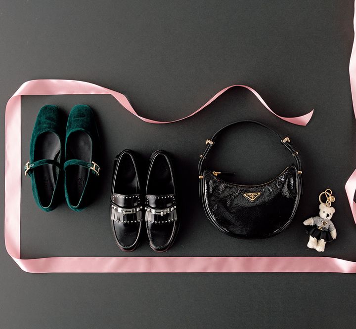 プラダのバッグは、小脇に抱えられるサイズ感とクラシカルにもモードにも使えるところが好き。チャームもいくつでも欲しくなります。さらに投資するなら、普遍的な中に新しさも感じられるエルメスの靴に。
