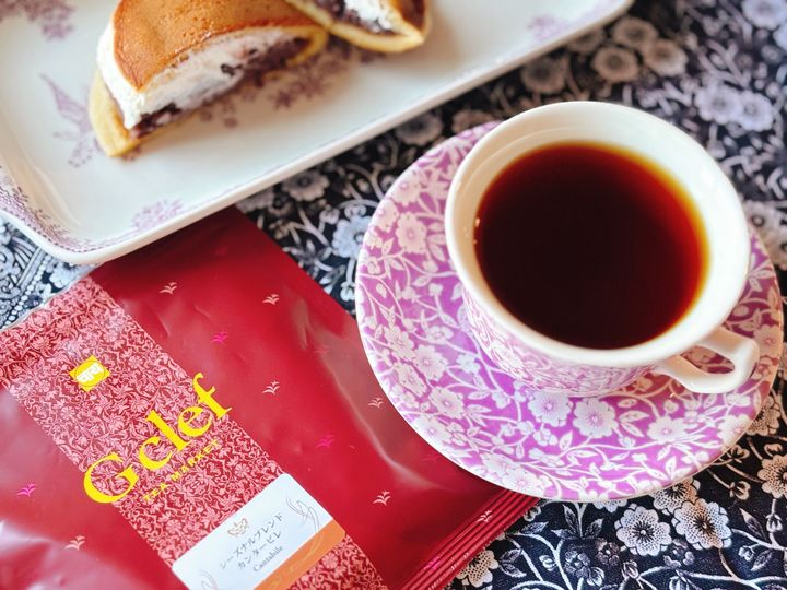 今回、「盛りすぎ!どらもっち」などと合わせたのはGclef(ジークレフ)「カンタービレ」です。寒い時期ならではの、サバラガムワとルフナのブレンドを楽しめます。どちらもミルクに合うので、ミルクティー好きの方にもおすすめです。花のようなやさしい香りも特徴的。ホイップやあんこの甘々なスイーツでも、後味をさっぱりしてくれます。