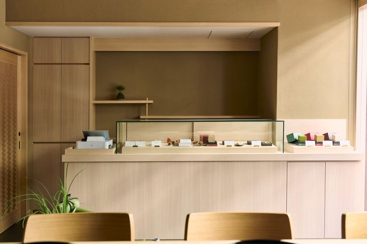 店内は茶室建築を軸とした数寄屋造。ショーケースには、“日本が誇る厳選スイーツを世界に届ける”をテーマにセレクトされた、上質なブランドスイーツがずらりと並びます。季節ごとに変化する有名シェフ監修の逸品のなかには、ここでしか購入できない限定品も。