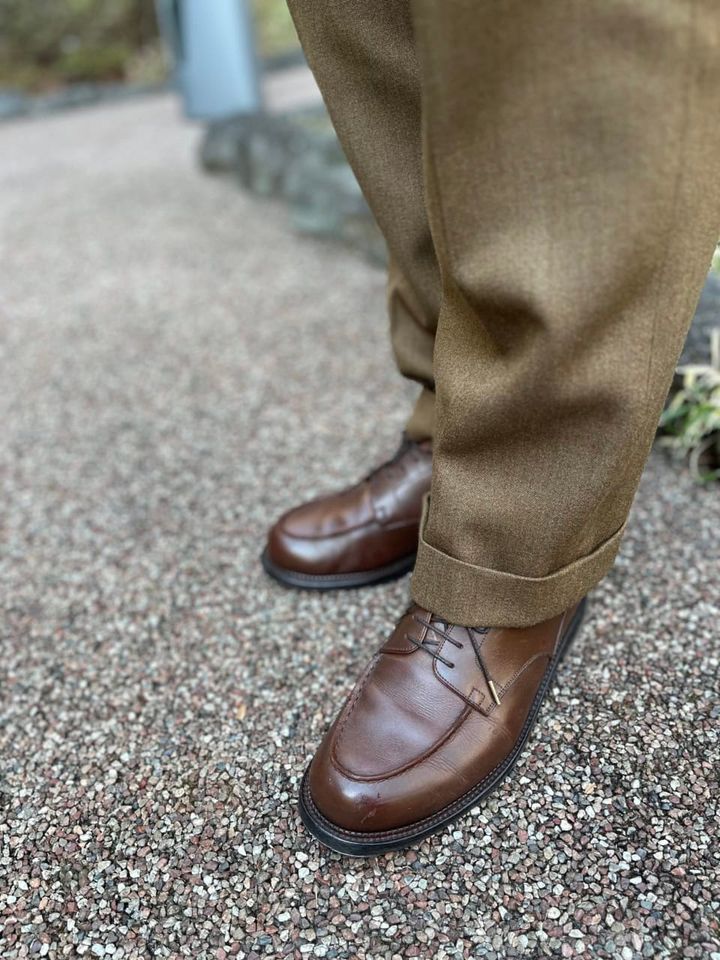シューズはスラックスと同系色を選ぶと、さりげない脚長効果も!