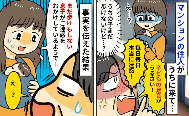 下の階の人がうちに来て抗議「子どもの足音が毎日うるさい!」まだ0歳で歩けないのに…?事実を伝えた結果