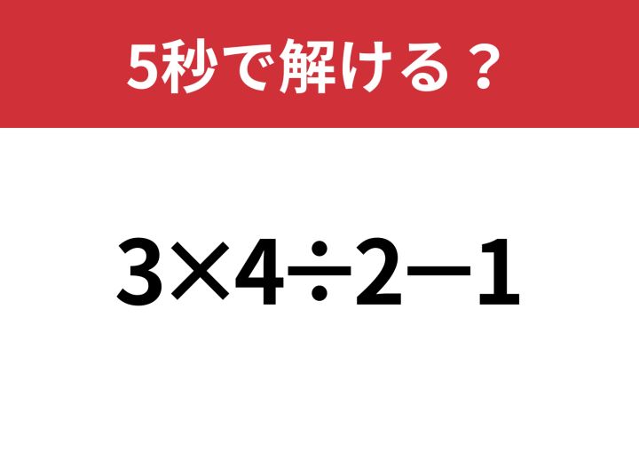 大人でも間違える人が多いかも?「3×4÷2−1」5秒で解ける?