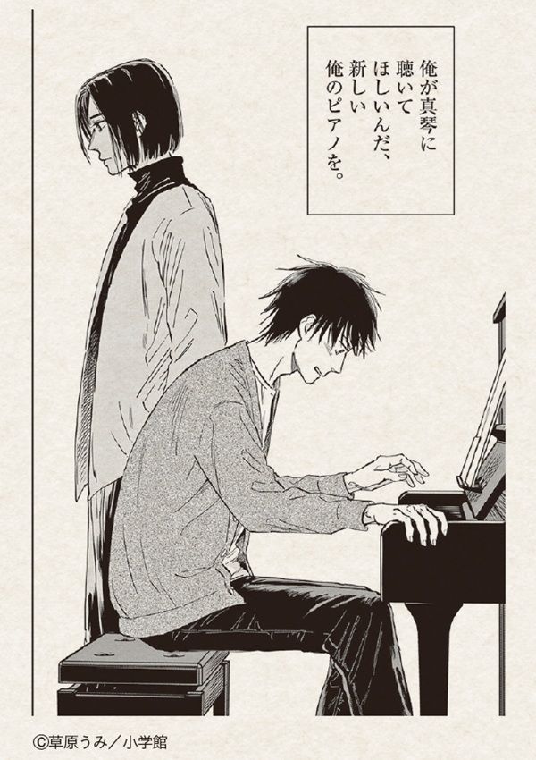 ジストニアを発症し、ピアニストの道を断ってしまった奏が、ネオピアニストとして有名になった友・真琴と再会。左手のみを武器に再起を図る、青春物語。小学館 770円 Ⓒ草原うみ/小学館