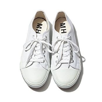 白スニーカー/MHL. スタイリストたちにも人気のムーンスターに、MHL(マーガレット ハウエル)がスペシャルオーダーしたコットン素材のスニーカー。ゴムに弾力や耐熱性を与える「加硫」を行う製法「バルカナイズ製法」で作られていることでソールが柔らかく、履き込んでも形を美しく保ち、耐久性が高いというのもメリットのひとつ。