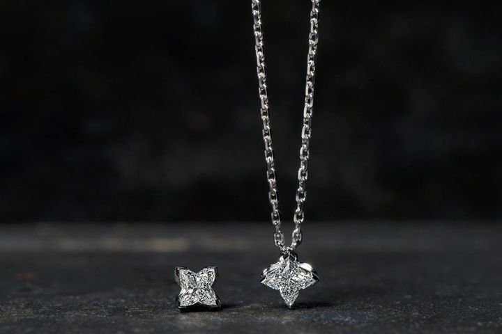 「LV ダイヤモンド」〈WG×D0.3ct~〉ペンダント¥547,800~シングルピアス¥385,000~(ともにルイ・ヴィトン/ルイ・ヴィトン クライアントサービス)