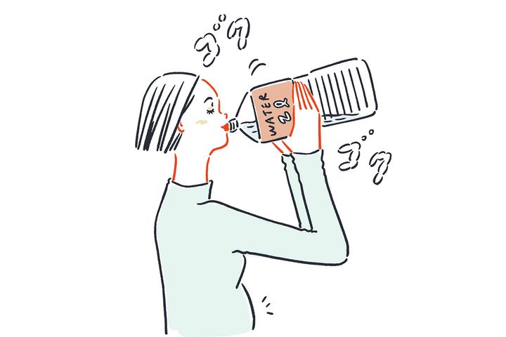 「水を1日に2ℓ飲みましょう」と言われますが、運動量や食事内容、環境、季節によっても異なるので一概には言えません。活動量が少ないのに水分だけとりすぎると、水太りを引き起こす場合も。排尿・排便の回数や体調をチェックしながら、こまめに少しずつ飲むのがおすすめ。また白湯など温かいものを飲むと体温が上昇し、内臓から温まり代謝アップにもつながります。