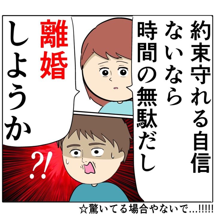 「約束守れる自信ないなら、時間の無駄だし離婚しようか」淡々と離婚の提案をするめいさんにろみ緒さんは驚愕します。