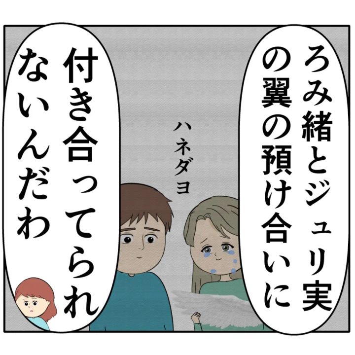 「ろみ緒とジュリ実の翼の預け合いに付き合ってられないんだわ」と呆れたように言い放つめいさん。