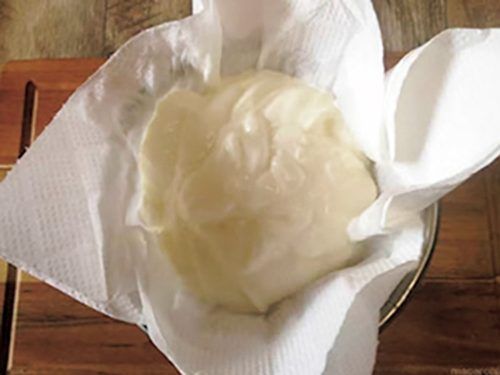 買ってきたヨーグルトをザルとキッチンペーパーを使ってグリークヨーグルトに。水分が少なくなり、たくさん食べられるのでおすすめです。